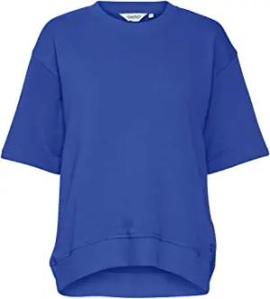 by OXBeate Damen Sweater Sweatshirt Pullover mit Kapuze Kängurutasche Rippbündchen Regular fit, Größe:XS, Farbe:Bluestone (184217)