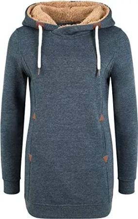 Vicky Pile Hood Long Damen Langer Kapuzenpullover Hoodie Pullover Mit Kapuze Und Teddy-Futter, Größe:S, Farbe:INS BLU M (7989912)