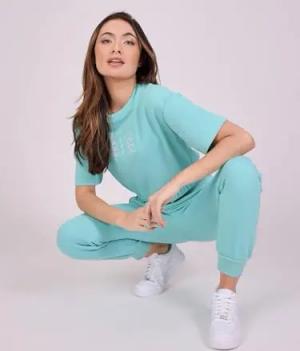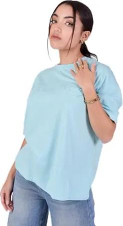 Basic T-Shirt mit lockerem Logo, türkis, Small