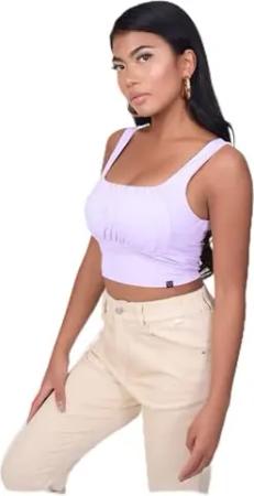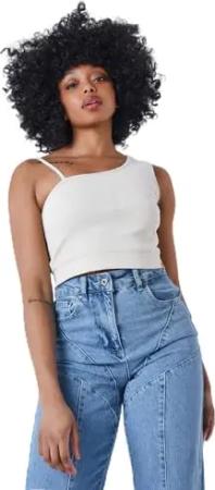 Crop Top mit breiten Trägern, Basic, elfenbeinfarben, 36