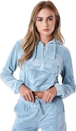 Kurzer Kapuzenpullover aus Samt für Frauen