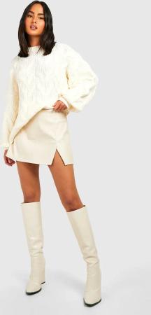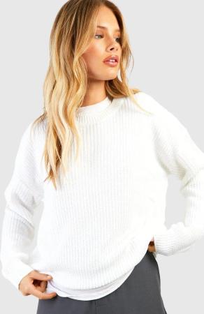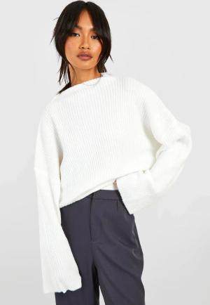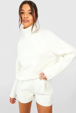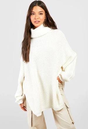 Weicher Gerippter Hochgeschlossener Pullover - Ivory - M, Ivory