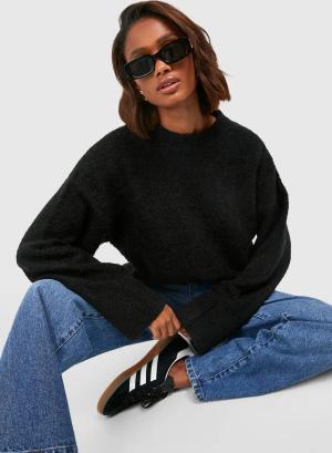 Bouclee-Pullover Mit Rundhals-Ausschnitt - Black - M, Black
