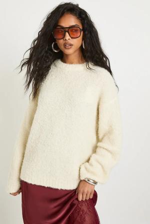 Bouclee-Pullover Mit Rundhals-Ausschnitt - Cream - M, Cream