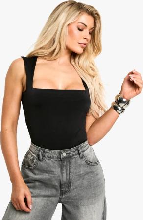 Doppellagiger Body Mit Geradem Ausschnitt - True Black - 34, True Black