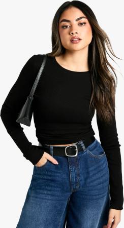Doppellagiges Geripptes Oberteil Mit Langen Ärmeln - Black - 36, Black