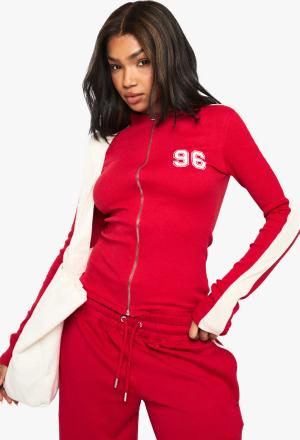 Geripptes Oberteil Mit Reißverschluss - Red - L, Red