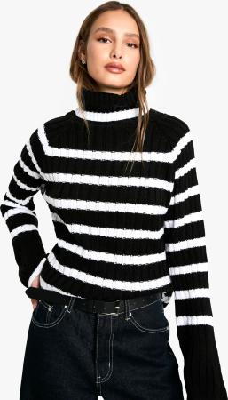 Gestreifter Rollkragen-Pullover Mit Weiten Ärmeln - Black - S, Black