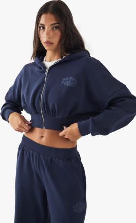 Kastiger Kurzer Hoodie Mit Reißverschluss Und Dsgn Studio Print - Navy - L, Navy