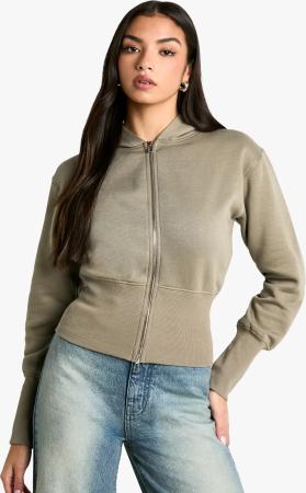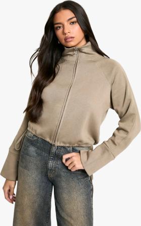 Kurzer Hoodie Mit Reißverschluss - Washed Khaki - S, Washed Khaki
