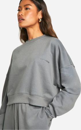 Kastiges Kurzes Sweatshirt Mit Dsgn Studio Stickerei - Charcoal - M, Charcoal