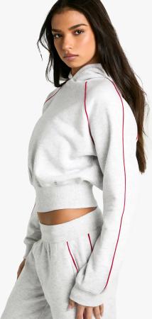 Kurzer Hoodie Mit Kontrast-Paspeln - Ash Grey - S, Ash Grey