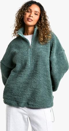 Oversize Borg-Sweatshirt Mit Nylon-Detail Und Reißverschluss - Khaki - S, Khaki