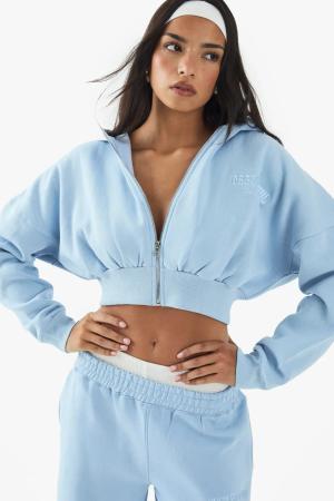 Kastiger Kurzer Hoodie Mit Dsgn Studio Stickerei Und Reißverschluss - Stone - Xl, Stone