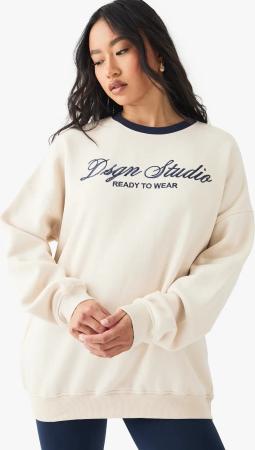 Oversize Kontrast-Sweatshirt Mit Dsgn Studio Stickerei - Cream - M, Cream