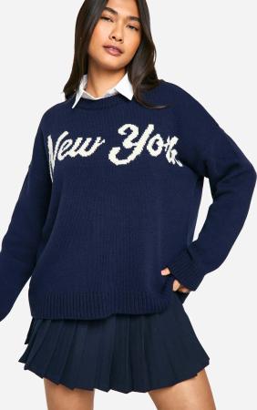 Oversize Rundhals-Pullover Mit New York Print - Navy - M, Navy