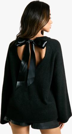 Oversize Strick-Pullover Mit Schleifen-Detail - Black - S, Black