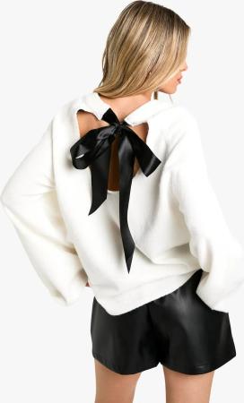 Oversize Strick-Pullover Mit Schleifen-Detail - Cream - S, Cream