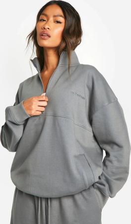 Oversize Sweatshirt Mit Dsgn Studio Stickerei Und Halbem Reißverschluss - Charcoal - S, Charcoal