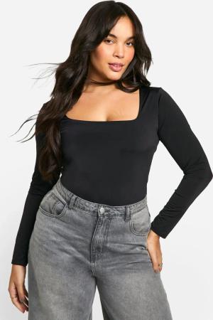 Plus Doppellagiger Body Mit Geradem Ausschnitt - Black - 44, Black