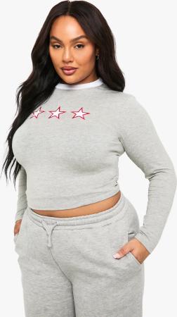 Plus Langärmliges Oberteil Mit Sternen - Grey Marl - 44, Grey Marl