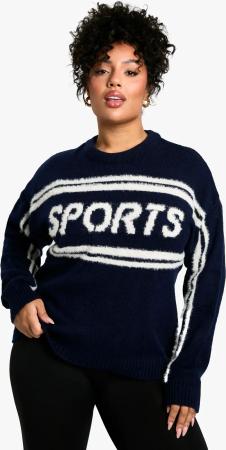 Plus Oversize Hoodie Mit Athletic-Stickerei - Navy - 24/26, Navy