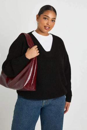 Plus Strickpullover Mit V-Ausschnitt - Black - 50, Black