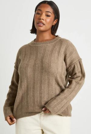 Plus Weicher Gerippter Oversize Pullover - Mocha - 44, Mocha