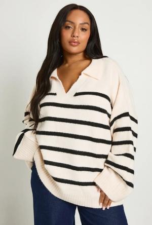 Plus Weicher Gestreifter Pullover Mit Knoten - Ecru - 48-50, Ecru