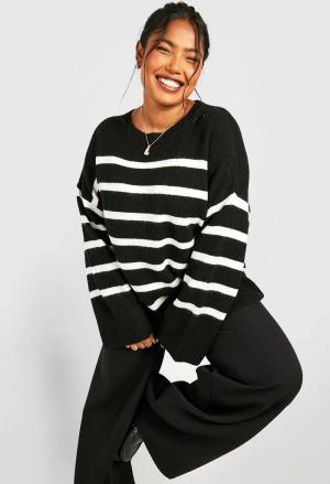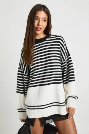 Womens Mixed Stripe Oversized Jumper - Black - S, Black