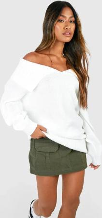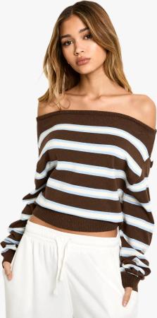 Schulterfreier Strick-Pullover - Choc Brown - S, Choc Brown