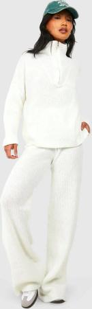 Set Aus Trichterkragen Und Hose Mit Weitem Bein - Cream - 38, Cream