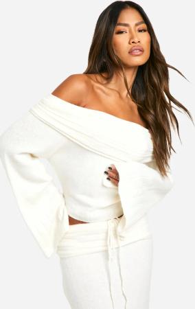 Weicher Gerippter Bardot-Pullover - Ecru - S, Ecru