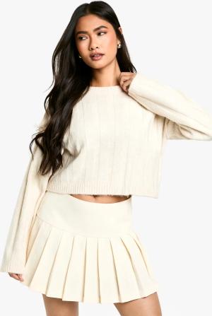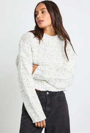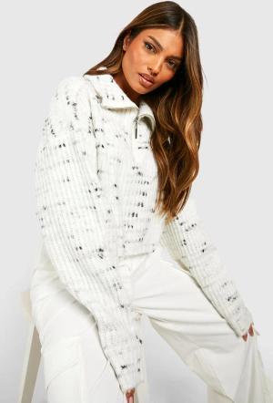 Womens Marl Knit Chunky Cropped Oversized Jumper - Ecru Marl - M, Ecru Marl