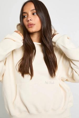 Womens Ath Club Embroidered Boxy Hoodie - Cream - M, Cream