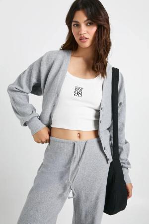 Womens Brushed Rib V Neck Cardigan - Charcoal - 36, Charcoal
