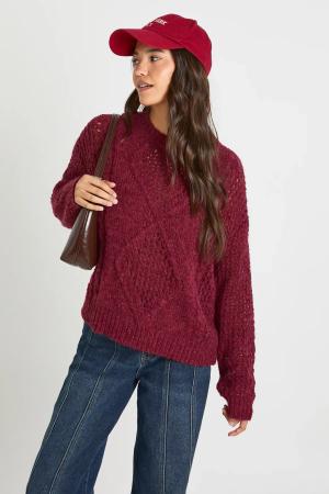 Womens Cable Detail Knitted Oversized Jumper - Burgundy - S, Burgundy