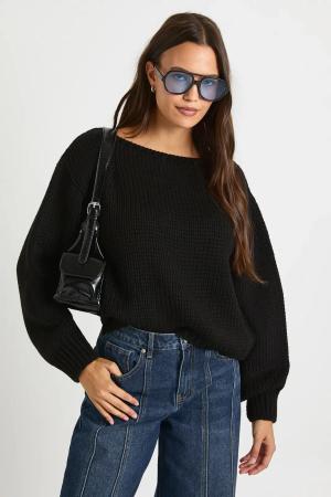 Womens Chunky Knit Boxy Jumper - Black - M, Black
