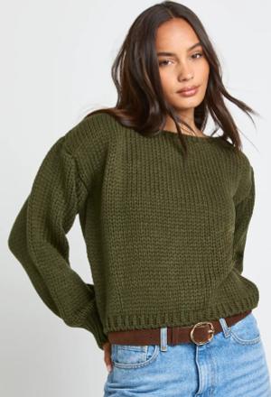 Womens Chunky Knit Boxy Jumper - Olive - M, Olive