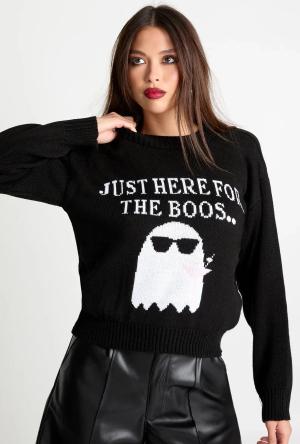 Womens Crew Neck Here For The Boos Halloween Crop Jumper - Black - M, Black