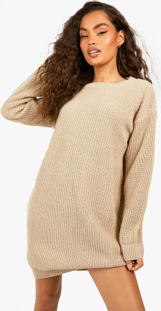 Womens Crew Neck Jumper Dress - Camel - M, Camel