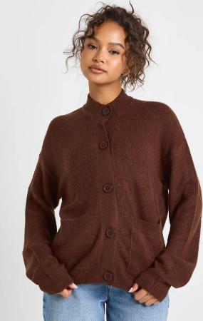 Womens High Neck Knit Cardigan - Chocolate - S, Chocolate