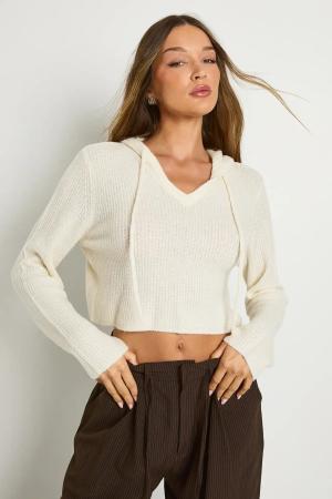 Womens Hooded Knit Jumper - Cream - S, Cream