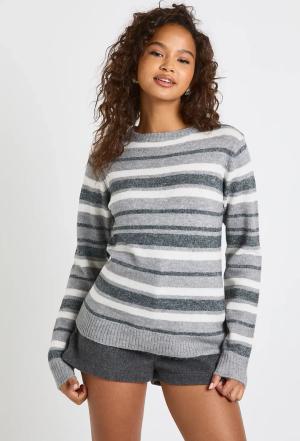 Womens Super Soft Stripe Crew Neck Jumper - Grey - S, Grey