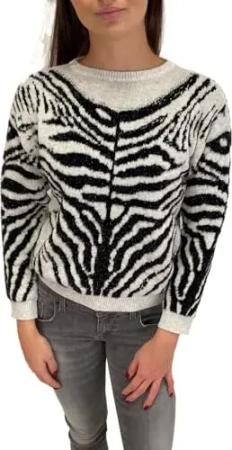 "M-Crepes-A Damen Pullover Langarm (DE/NL/SE/PL, Alphanumerisch, XL, Regular, Regular, Creme-Schwarz)