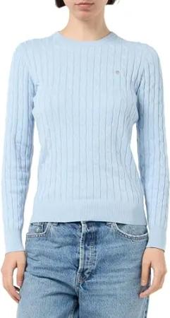 Damen Stretch Cotton Cable SS C-Neck Pullover, Clear Sky, M