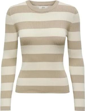 Damen Gestreifter Langarm Strickpullover Striped Oberteil Gerippt Basic Knit Sweater Top JDYPLUM, Farben:Beige, Größe:S