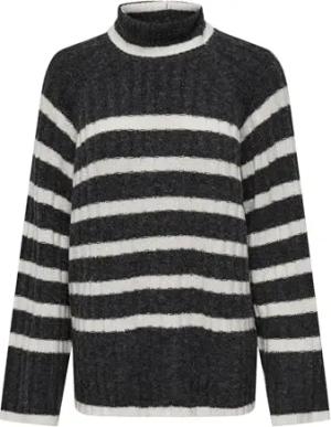 Damen Jdyjusty L/S Stripe KNT Noos Pullover, Black/Stripes:Eggnog, XL EU