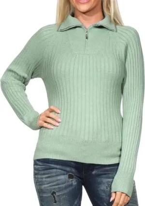 RIPP Strick Pullover Rundhals Oberteil Einfarbiger Reißverschluss Stehkragen Sweater Jumper JDYMAGDA, Farben:Grün, Größe:S