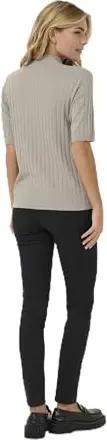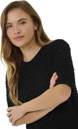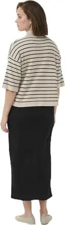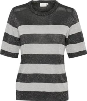 Strickpullover KAlizza Damen Strickpullover Kurzarm Streifen Lässig Casual Rundhals Pullover Gestreift Black/FeatherGreyMel. Narrow XS